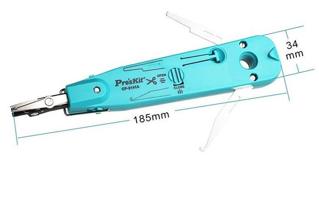 Эффективный инструмент Pro'sKit CP-3141A для расшивки кабелей на кросс вдавливанием в разрез контакта.